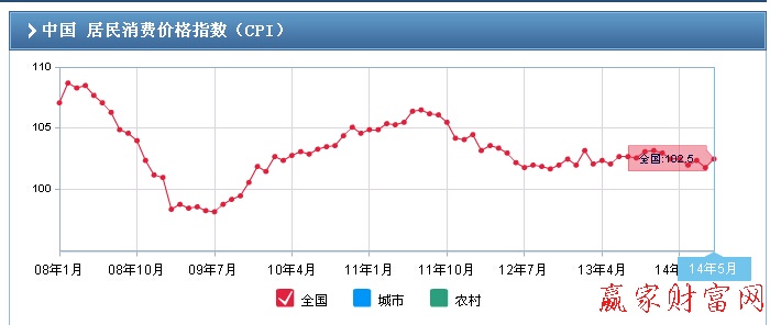 比如中國剛剛公布的五月份CPI數據為同比增長2.5%,相比四月份的1.8%有所放大,說明當前經濟發展有所擴大,有所增強,同時反映市場流動性有所增強,公司經濟有所增強。如下圖所示CPI數據走勢:
