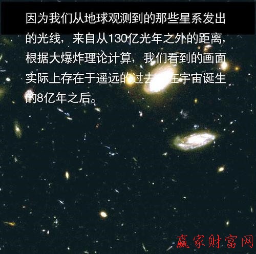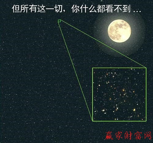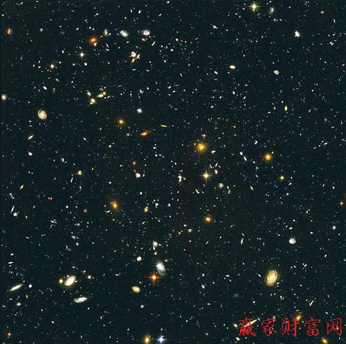 看完這些圖,你覺得地球很小很小是吧?沒錯(cuò),地球?qū)τ阢y河系來說,只是個(gè)微不足道的小行星。不過在我們的尺度里,所有你能觀測(cè)到的星體還都只是在銀河系范圍內(nèi)的。下面讓我們來看看在其他星系里有什么?太空望遠(yuǎn)鏡哈勃,將它的鏡頭對(duì)準(zhǔn)夜空里的一個(gè)小角落。