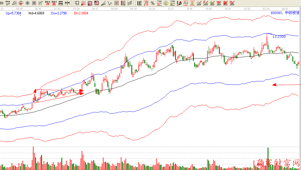 上升三角形向上突破時(shí),一般都配有較大的成交量,無量向上突破可能是假突破,投資者不可貿(mào)然進(jìn)入。另外,投資者要注意的是,上升三角形越早往上突破,后勁越足,那些遲遲不能突破的上升三角形,很可能是莊家悄悄出貨而故意給中小投資者設(shè)置的多頭陷阱。一旦莊家達(dá)到目的,在他們出貨完畢后,上升三角形非但不會(huì)往上突破,而極有可能演化成雙頂形態(tài),股價(jià)下跌就不可避免了,投資者對(duì)此務(wù)必要提高警惕。