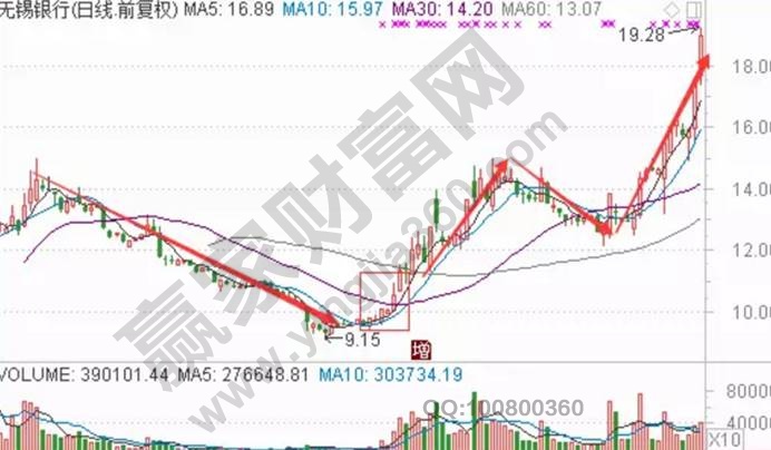 這個以無錫銀行的走勢來進(jìn)行分析。下圖中該股就是典型的右小角穩(wěn)健企穩(wěn)突破性的走勢,在市場化總這樣的形態(tài)是比比皆是的,但是投資者對于啟動的把握是非常關(guān)鍵的。