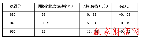 通過買入1手執行價為980的看跌期權,賣出2手執行價為940的看跌期權,建立了1手看跌期權比率套利,初始投資成本為0.7×100= 70,頭寸的delta為-0.02。如果標的資產價格到期時在980上方,所有期權無價值過期,損失為初始投資成本70;若標的資產價格到期為940,賣出的期權無價值過期,該策略獲得最大潛在盈利是3 930(=40 x10 -70);下行損益平衡點為900.7(=940 -3 930÷100)。