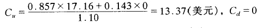 若股息不是常量,假設股票在時刻1支付$5,而u和d則代表股價扣除股息現值的升降幅度比率,則問題就容易解決了。可以S'表示股價減去股息現值的凈值,u和d就適用于s',但交易決策還是取決于S與E的比較。如果股票在時刻2除息,股息在零時刻的現值即為$5/1.10= $4.55,即若S' = $ 60,那么S=$60 + $ 4.55 = $ 64.55。