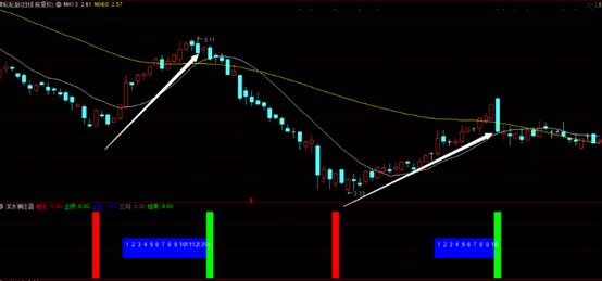 當出現如上面的綠柱的信號時,此時就是我們的止損或者清倉時機。當然在這之外的灰柱,那么就是本波段的過程之中,藍色小框內數字是已經達標已收益5%點的持續天數。