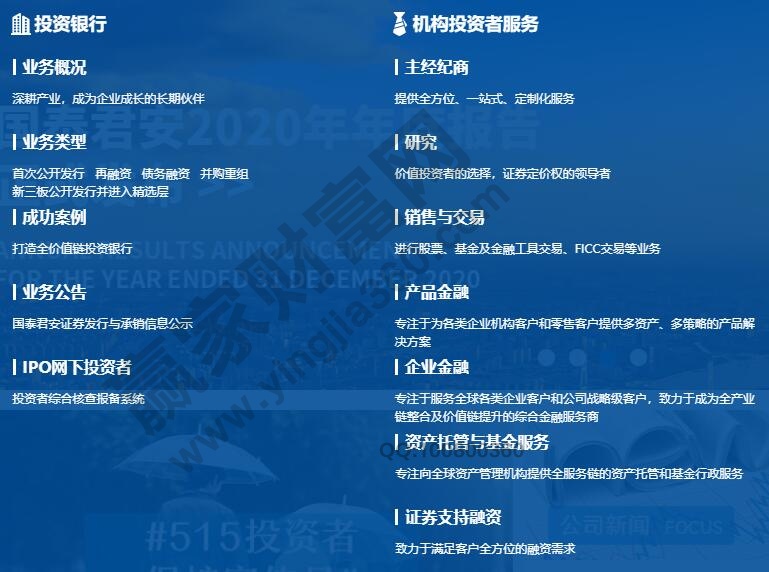 公司合并設立與1999.8.18,國泰君安證券股份有限公司,綜合金融服務商,具有長期、持續領先的性質。經歷了中國資本市場的多個發展周期以及全部歷程,深耕中國市場,服務客戶,建立各種金融服務,為機構客戶以及個人客戶帶來方面,在行業中有一席之地。