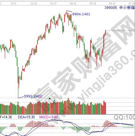 最后我們再說下MACD線的背離,深證綜指日線MACD在5月24日第二次底背離時,出現(xiàn)了MACD白線的第一次背離,6月2日,MACD柱第三次背離時,MACD白線第二次背離。背離是判斷底部的一個必要條件,但并不是全部條件。