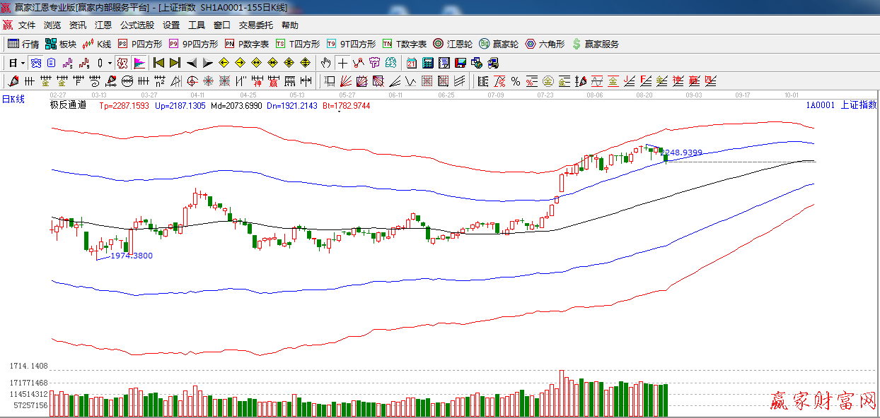 ★依據贏家江恩系統極反通道提示:外軌線破位,整體趨勢轉向弱勢,短期操作謹慎為主。