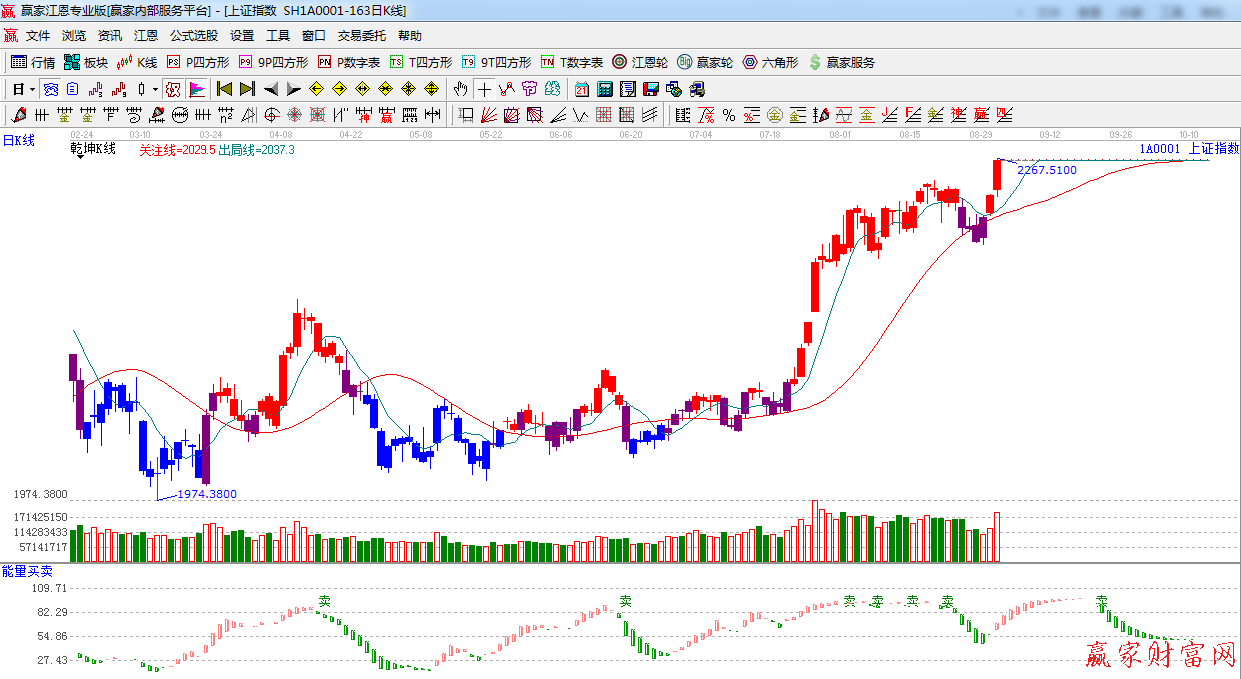 ★依據贏家江恩系統乾坤K線提示:k線由紫色轉入紅色k線,進入安全可操作區域,短期看多。