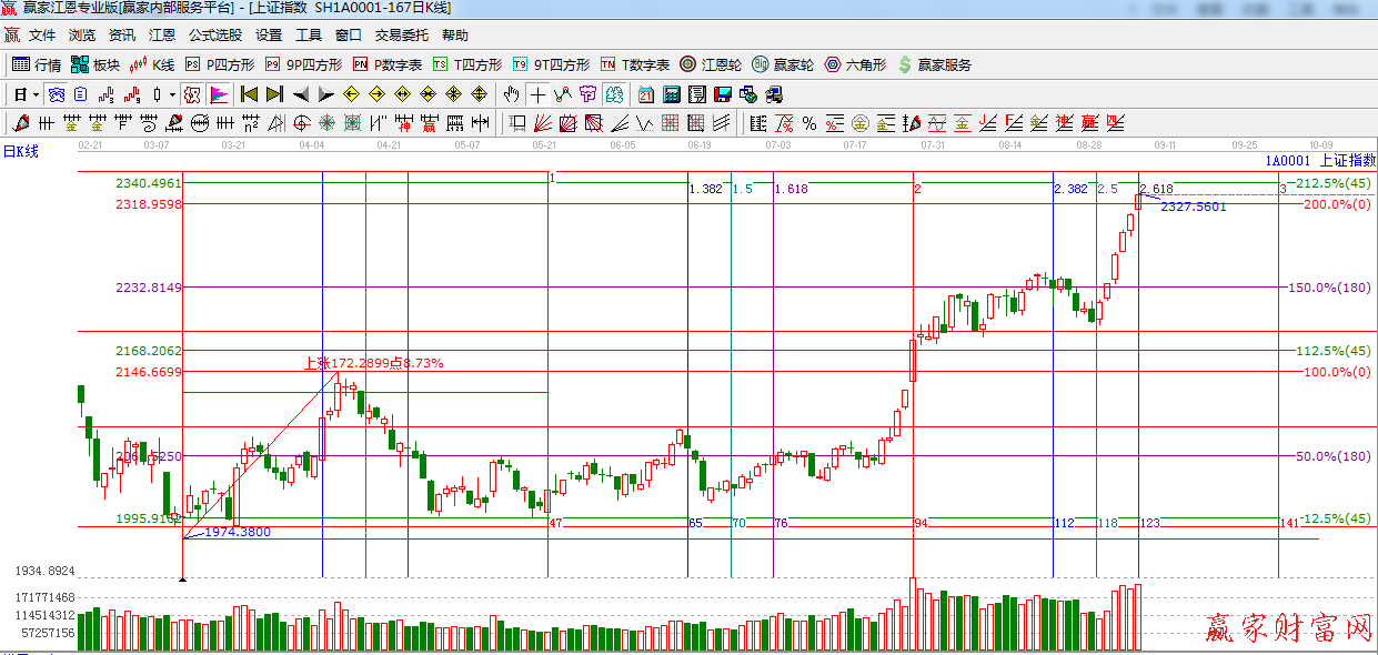 ☆依據(jù)贏家江恩系統(tǒng)黃金時間周期線提示:上周五9月5日是前期提到的時間窗口,短期留意盤面變化。