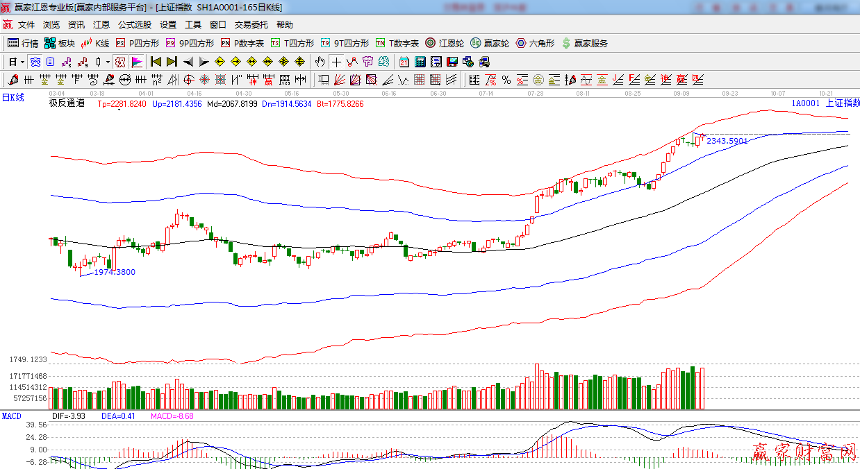 ★依據贏家江恩系統極反通道提示:外軌線之下高位震蕩,小陽線報收,謹慎看多。