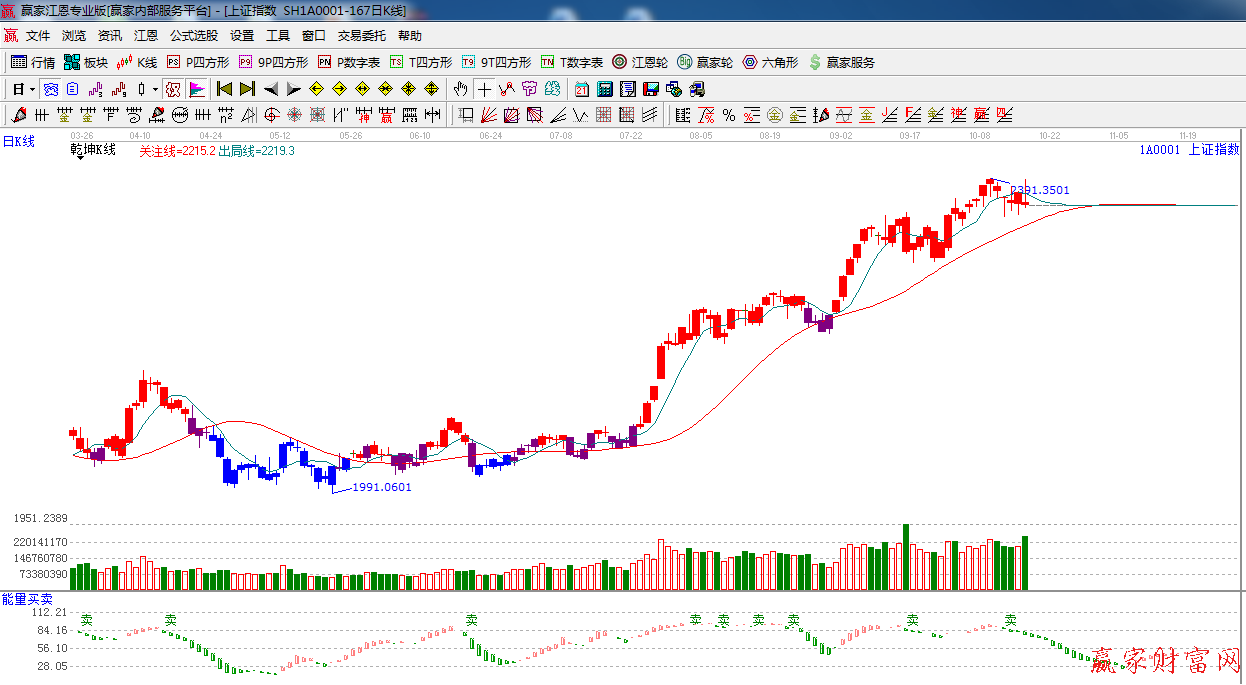 ★依據贏家江恩系統乾坤K線提示:反抽綠色出局線,短線看空,波段看多。