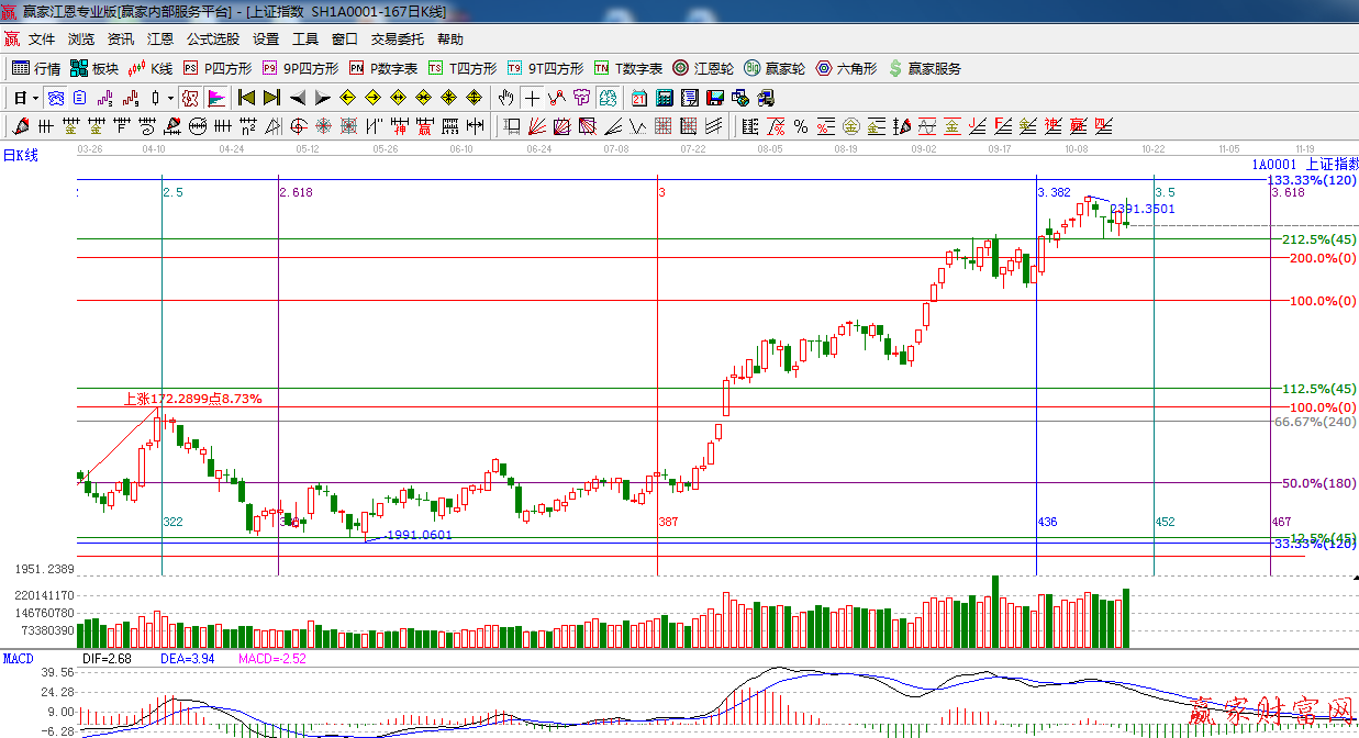 ☆依據贏家江恩系統黃金時間周期線提示:10月9日以及寒露時間節點之后,指數重心下移,短期可能將要調整幾天 了,下一時間窗口10月22日
