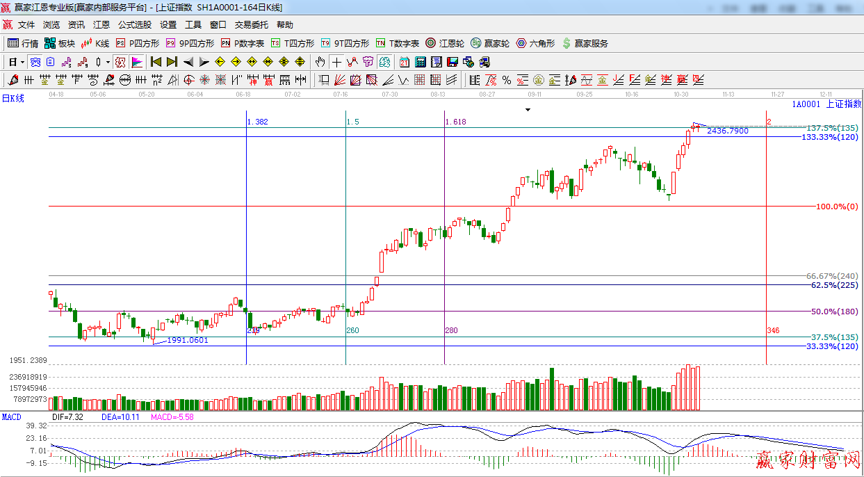 ☆依據贏家江恩系統黃金時間周期線提示:重點關注時間窗口是11月24日。