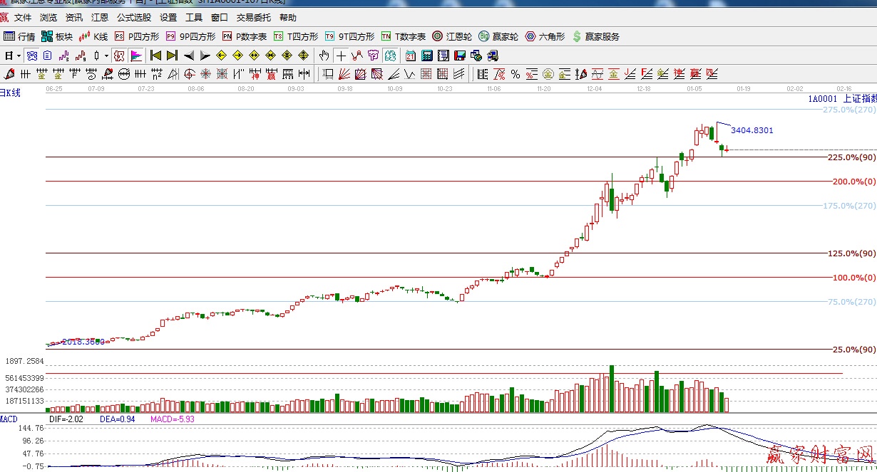 ★依據贏家江恩理論系統極反通道提示:失守極反通道紅色外軌線后滬指震蕩下探,短周期擊穿60分生命線后預計將圍繞此線運行二到三個交 易日,隨后做方向選擇。