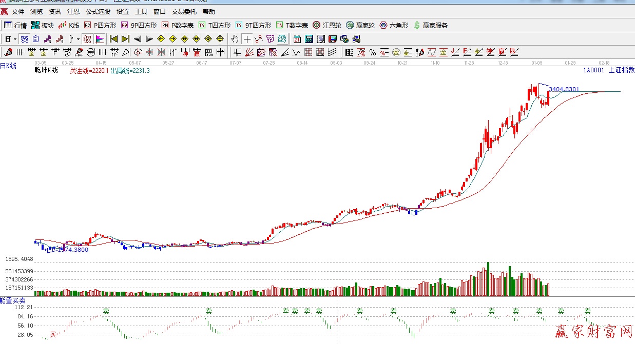 ★依據贏家江恩理論系統乾坤K線提示:日k線依然處于紅色區域,今日再次突破出局線,短線看多,波段看多。