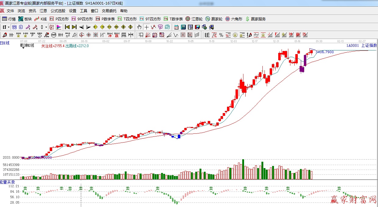 ★依據贏家江恩理論系統乾坤K線提示:1月21日由紫色k線轉入紅色區域,看多。