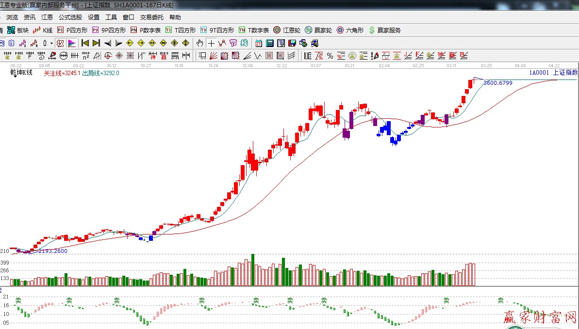 ★依據(jù)贏家江恩理論系統(tǒng)乾坤K線提示:紅色k線,可操作區(qū)域,趨勢(shì)看多。