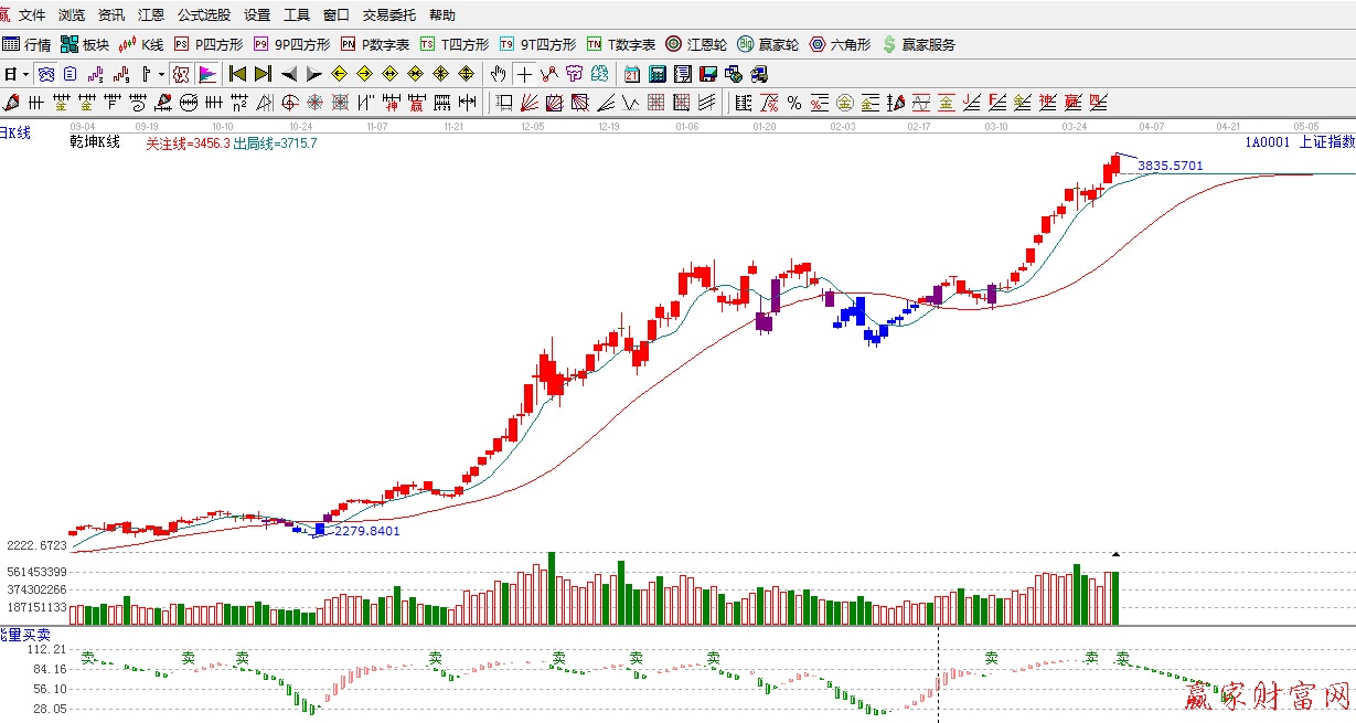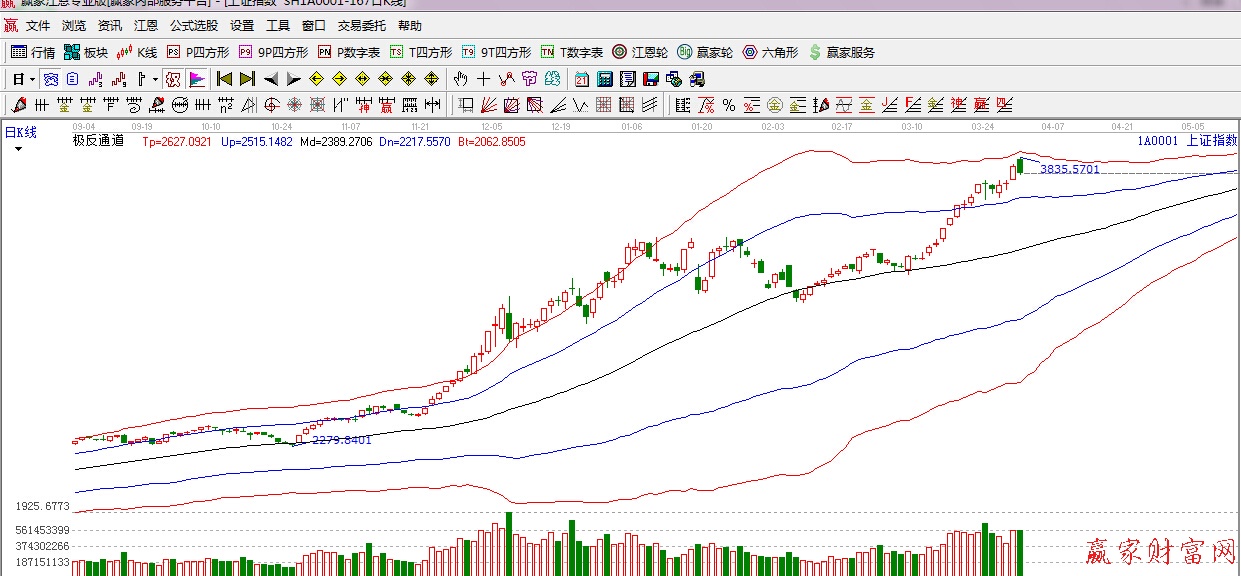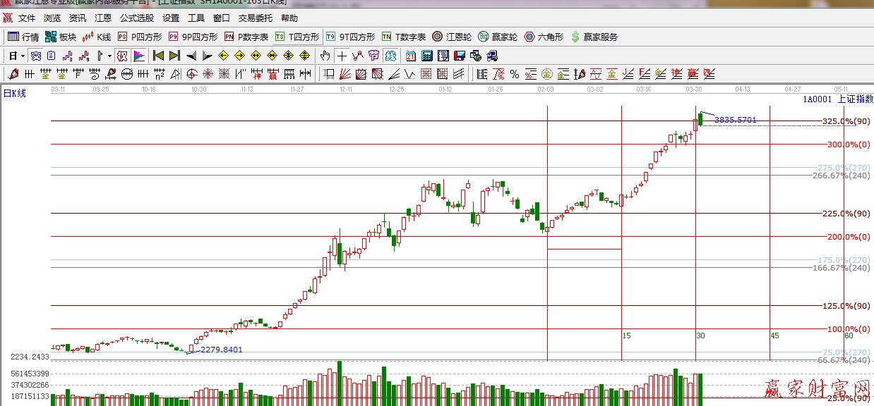 ★依據贏家江恩理論系統極反通道提示:在利好推動下,滬指大幅高開,但上方面臨紅色外軌線阻力,隨著權重板塊的沖高,股指也逐步回落,短期謹慎看多。