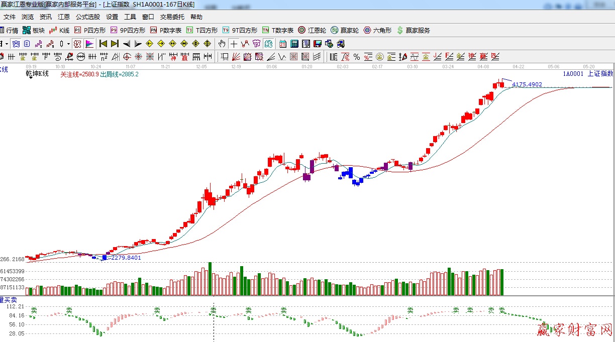 ☆依據贏家江恩理論系統能量買賣提示:與前期呈現小幅背離走勢,并有“賣”字出現,謹慎面對。