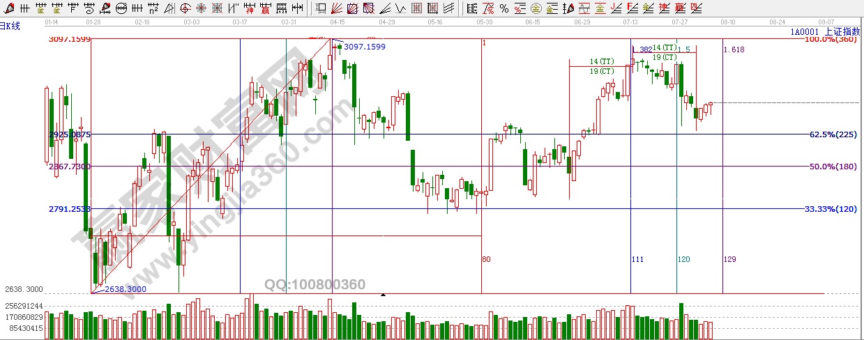 ★依據贏家江恩理論系統黃金時間周期線提示:窗口8月1日之后,下一時間點留意8月8日。