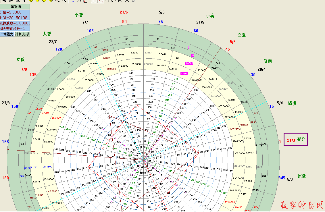 江恩理論是按自然歷法規則來設計的.我們都知道地球公轉最快近日點是1月5日,地球公轉最慢遠日點是7月5日.1月20日——7月23日是一年中氣溫最極端的日子。聰明絕頂的江恩沒有用最極端的日子為起點,為什么選定3月21日為起點?只有靠我們去分析研究,我的理解是:我們公歷歷法年的開始為1月1日,按農歷年的開始為正月初一,按易經占卦年的開始為立春,3月21日正是春分時節。江恩精通圣經難道他不研究我們的易經嗎?西方人不研究我們古代火藥發明技術能制造出火箭來嗎?俄國人不為我們培訓大量高端人才我們的兩彈一星能在較短時間里上天嗎?,《日本蠟燭圖技術》為什么作者是美國人?這都是借鑒的結果。我們的24節氣與他的輪中輪周期不是巧合,我認為是他研究我們的易經的結果。他確定的日子周期點正是我們的24節氣轉換周期點。