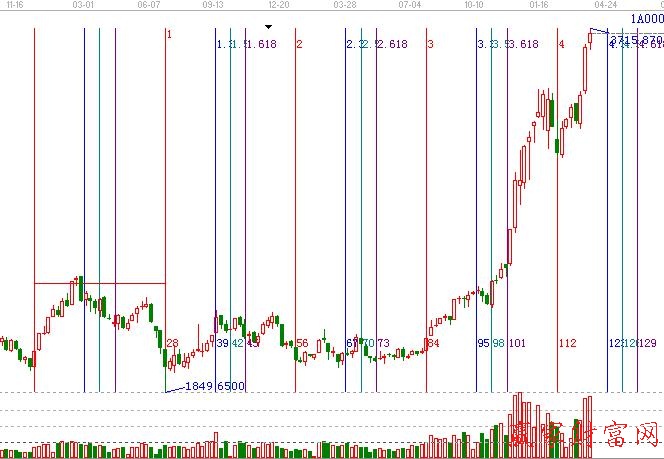 黃金時(shí)間周期線,這個(gè)工具不但可以對(duì)當(dāng)下的行情作出時(shí)間的預(yù)測(cè),還可以對(duì)未來(lái)時(shí)間作出判定,是江恩理論思想的具體應(yīng)用。