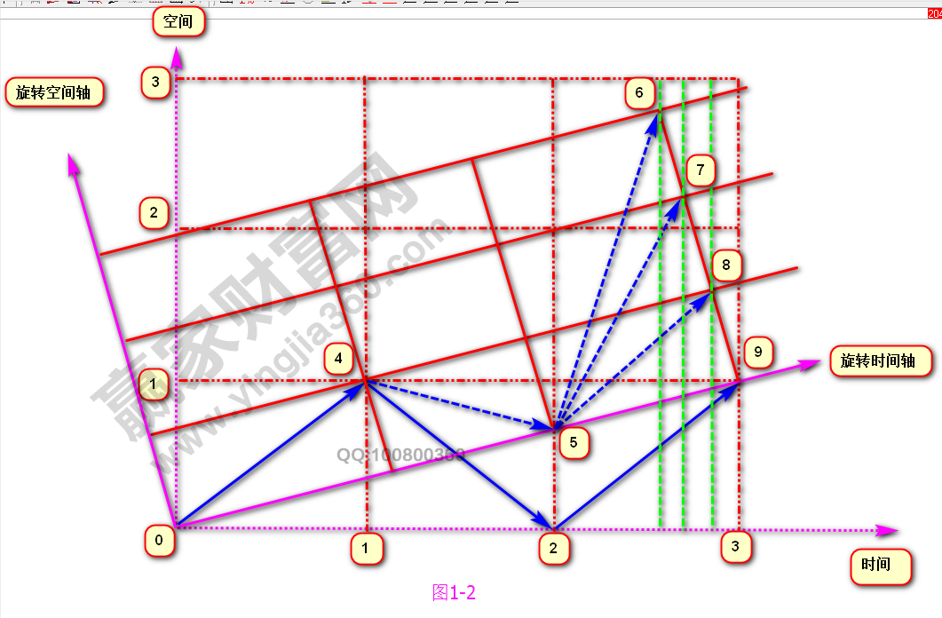 這張圖一旦做出來(lái),我想也就不需要闡述太多了。股價(jià)由于諸多因素(比如主力的建倉(cāng)行為)導(dǎo)致實(shí)際的真實(shí)走勢(shì)應(yīng)該是:0456、0457或者0458這樣而不是0429這種理想的。0456也好,0457也罷,實(shí)際也是一種動(dòng)態(tài)平衡系統(tǒng)。我們不知道外因?qū)е?429系統(tǒng)內(nèi)部多空力量失衡多少,但他一定是可以量化的。這個(gè)量化的體現(xiàn)就是:時(shí)間軸和空間軸偏轉(zhuǎn)的角度,所以說(shuō)時(shí)間、空間、角度是江恩理論的三要素,而時(shí)間是最重要的。45678的時(shí)間是定的,江恩用數(shù)學(xué)、幾何將這些外因數(shù)字化、模型化、量化,再大的利好也不能讓股價(jià)無(wú)限制漲到外太空,因?yàn)闀r(shí)間是定數(shù)!!!這就是摯愛(ài)成就夢(mèng)想里的時(shí)空隧道,這就是輪中之輪,規(guī)矩之外的規(guī)矩,平衡之外的平衡,圈子之外的圈子!!!