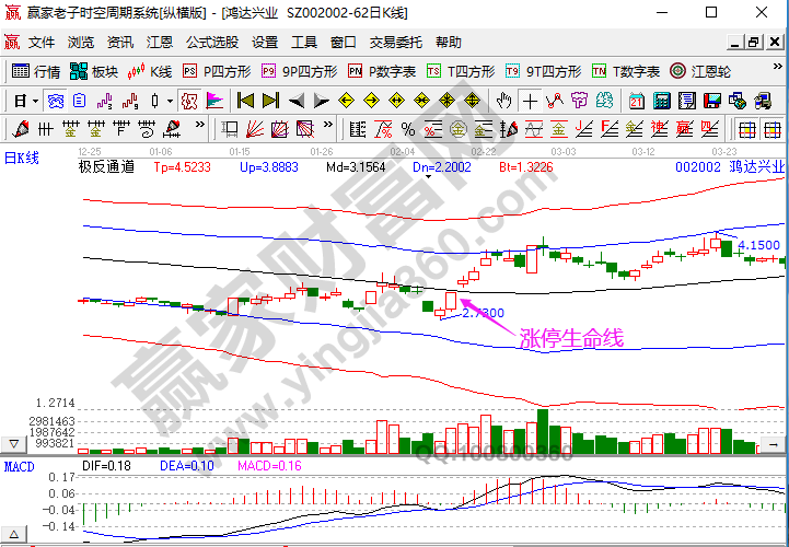 首先,它可以作為是否值得操作的重要參考,生命線上可以考慮進行關注操作,而生命線下就可以暫時不用關注;其次就是,買賣參考點,生命線既然是均線,那么它同樣的就具有均線的特質,也就是說,它們有著支撐和壓力的作用,那么投資者就可以在股價在生命線獲得支撐的時候進行買入操作,而在跌破生命線的時候進行賣出操作。除了這些常見的股票生命線外,贏家極反通道中也同樣有一條生命線,它可以說是股票趨勢強弱的分水嶺,依據股價與生命線的關系:股價在生命線以上,則股票強勢可以操作;股價在生命線以下,則股票弱勢暫不考慮。同時生命線是一個強勢股的啟動點,操作生命線附近的股票穩健且強勢,如果說一個股票在剛剛啟動的時候就把握住了,那么把握住的就是這個股票最好的行情。這里可以記住一個操盤口訣:生命線上強勢走,生命線下難抬頭;紅藍兩條外軌線,支撐壓力顯勢頭。需要注意的是極反通道中的生命線,甚至是其它4條線都不是大家所熟知的均線。