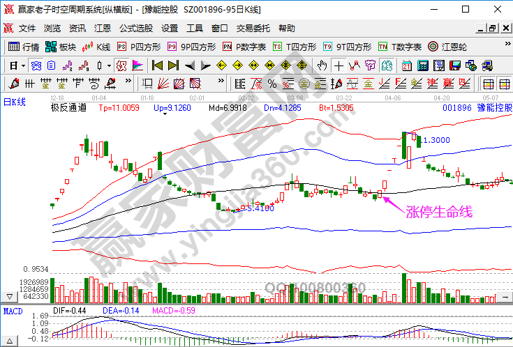 001896豫能控股2021年3月31日符合贏家漲停生命線模型,如在4月1日最低買入,在4月8日最高價賣出,5交易日獲利可達63%。