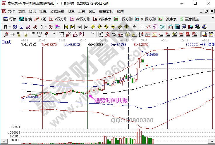 300272開能健康在贏家極反通道生命線獲得支撐,在4月1日老子周期數列時間窗口啟動拉升,如在4月1日最低點買入,在5月13日最高點賣出,27個交易日獲利可達114%。