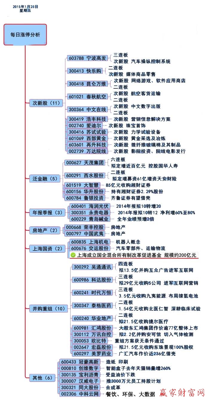 漲停原因揭秘:國企改革頂層設計中,已經成熟的包括關于深化國有企業改革的指導意見在內的幾個方案會爭取在春節前推出,方案正上報國務院國企改革領導小組審批,并最終報中央全面深化改革領導小組討論。受此影響,擁有國資背景的個股今日紛紛漲停。