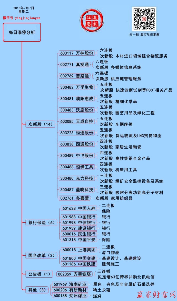 盤(pán)面上,保險(xiǎn)、銀行漲幅居前,板塊內(nèi)中國(guó)人壽、中國(guó)平安、中國(guó)銀行、中信銀行、建設(shè)銀行、民生銀行漲停。另外,黃金水道、上海自貿(mào)、工程建設(shè)、石油等板塊漲幅靠前,通用航空、民營(yíng)醫(yī)院、高校、4G、粵港自貿(mào)、彩票等板塊跌幅領(lǐng)先。全天有逾20只非ST股漲停,近1700只左右個(gè)股跌停。以下將對(duì)部分股票漲停原因進(jìn)行分析: