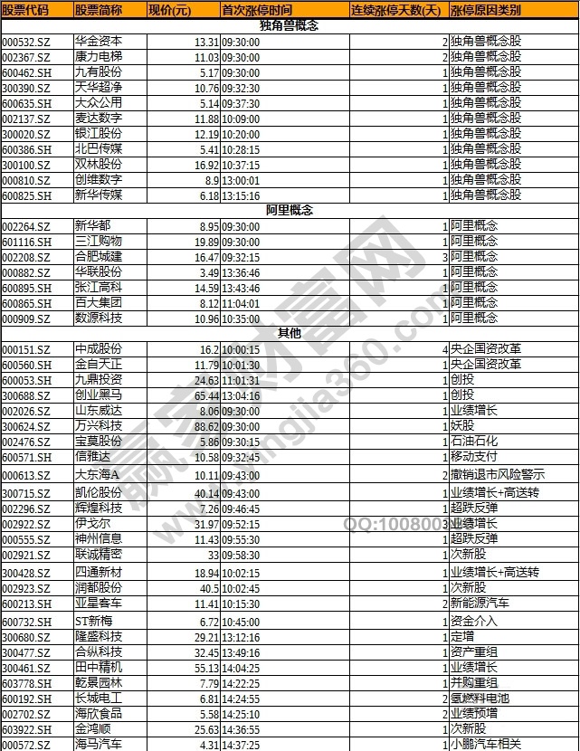 盤面上,次新總龍頭萬興科技(300624)今日復牌再漲停,實現七連板。孫宏斌辭去樂視網(300104)董事長職務,樂視網今日復牌,超200萬手大單封死跌停。傳阿里巴巴研究A股上市,獨角獸板塊大漲7%,合肥城建(002208)、大眾公用(600635)等10股漲停。寧德時代或超富士康IPO速度,天華超凈(300390)漲停。獨角獸概念大漲帶動創投概念,張江高科(600895)、九鼎投資(600053)等多股漲停。微信及支付寶接入銀聯方案正制定,信雅達(600571)漲停。央企國企改革板塊再度沖高,龍頭中成股份(000151)收獲四連板。