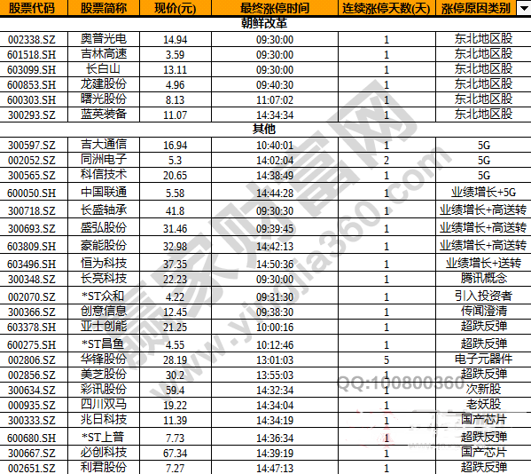 盤面上,朝鮮將集中全部力量發展經濟,東北板塊大漲,龍頭吉林高速(601518)、長白山(603099)、曙光股份(600303)一字漲停。騰訊入股合作金融云,長亮科技(300348)一字漲停。深交所監管8個炒作“樂視網”賬戶,樂視開盤跌停。吉林、煤炭、石墨居板塊漲幅榜前列,集成電路、國防軍工、芯片居板塊跌幅榜前列。臨近收盤,吉林板塊龍頭吉林高速依舊保持強勢,維持漲停封死一字板。