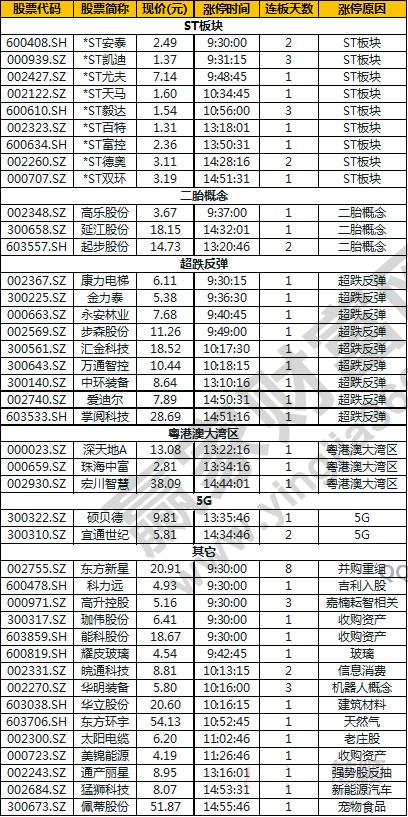 主流看點:二胎、粵港澳、ST板塊、超跌 封板效率:一般