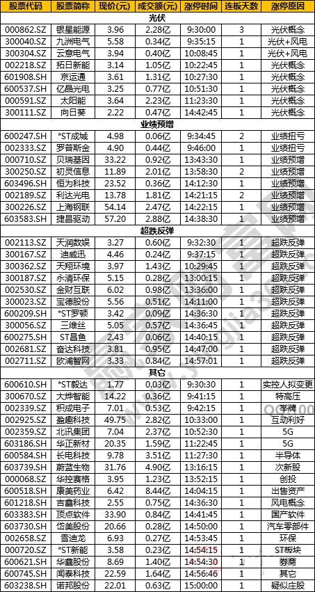 盤面上,次新股午后復蘇,蔚藍生物(603739)直線封板,宇晶股份(002943)、華致酒行(300755)、寧波水表(603700)小幅跟漲;中捷資源(002021)午后直線沖板,午間公司公告寧波沅熙擬向景寧聚鑫協議轉讓其持有的公司16.42%股份;光伏板塊集體走強,銀星能源(000862)強勢收獲三連板,京運通(601908)、億晶光電(600537)等多股漲停;券商板塊早盤拉升,華林證券(002945)一度大漲8%。