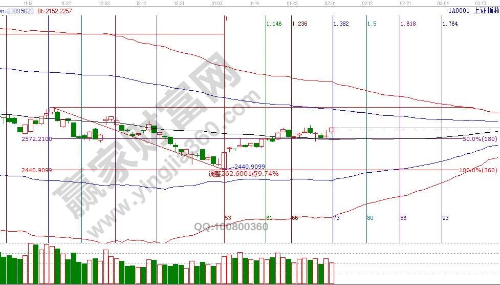 大盤日線生命線2570點上橫盤震蕩,按規則站穩一線看高一線,生命線(2570點)不破看高至藍色上軌線(2690點),價格空間上,轉折趨勢線、江恩波段百分比工具顯示,2月11號支撐是2594,壓力是2634、2641點,時間上2月11、12號是時間窗口。操作策略,大盤日線反復確認后短期有向上拐頭跡象,生命線上看多做多,整體倉位保持在3-5成,個股上符合贏家江恩系統強勢二買戰法可開倉或做低吸高拋操作。