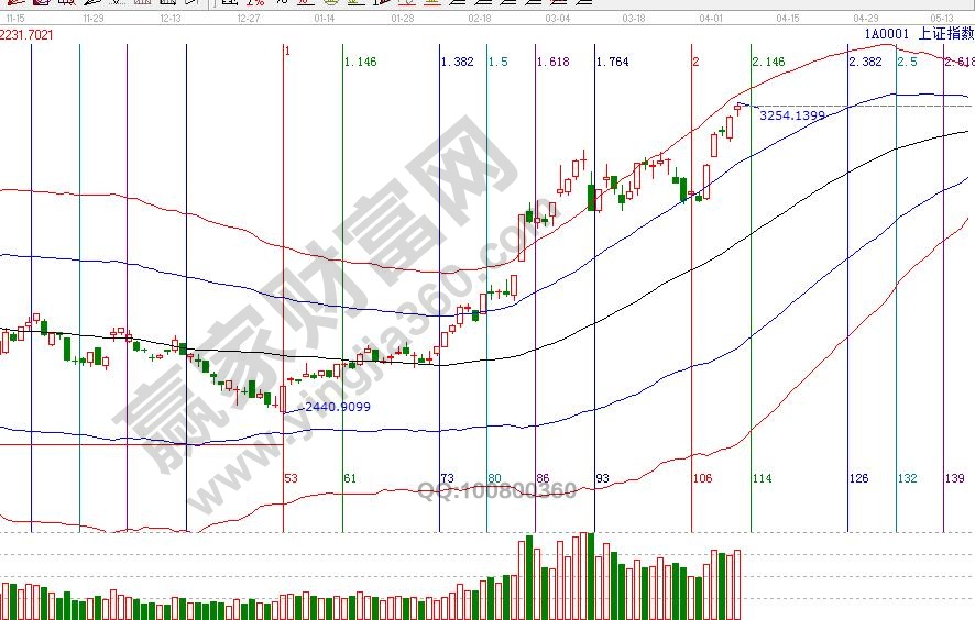 大盤日K線屢創新高向極反通道紅色外軌線邁進,各周期保持上攻勢頭,排除假期不確定性因素外,市場維持趨勢繼續上行,日線紅色外軌線是3286點;空間方面,波段百分比延伸線3倍循環180度3360接近,江恩輪中輪135度是3356點【3350附近是多周期共振位,短線、波段均是風險大于機會】,短期壓力是3261、3283點,短期支撐3228點;時間方面,本周是4月時間窗口密集區間,指數時間窗口靠近紅色外軌線后短期走勢預期將轉復雜。操作策略,日線再度進入超強通道,穩健者倉位保持在5成,激進者倉位保持在7成,靠近紅色外軌線持倉遵守提高止賺位策略。