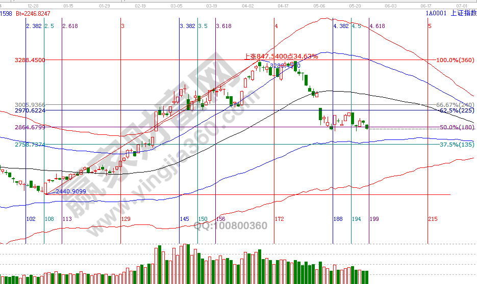 時間是決定市場走勢最重要因素。回顧贏家江恩系統(tǒng)工具點(diǎn)評時間窗口,4月22號指出降低倉位至3成,4月25號提示低風(fēng)險者空倉休息,5月9號時間窗口提示短線高風(fēng)險可以開倉,17號時間窗口前(15、16號)提示獲利出局,這兩天提示短線周期時間窗口(23號)將確認(rèn)一關(guān)鍵位,從收盤數(shù)據(jù)看,市場明日失守波段百分比180度2834點(diǎn),價格拐點(diǎn)將是5月第三個日線時間窗口28、29號,在此時間段,無技術(shù)、無紀(jì)律者休息不要再被收割了,你是否將1季度的收益已回吐市場?要改變虧損的現(xiàn)狀,從擁有一套完整交易體系開始。江恩理論研究時空運(yùn)行,通過工具預(yù)判出時間后,空間上則看趨勢工具極反通道藍(lán)色下軌線(VIP學(xué)員查看相應(yīng)位置)。日線藍(lán)色下軌線站穩(wěn)將是又一次操作機(jī)會,待整固結(jié)束后市場必會有一波反彈到生命線行情,而這機(jī)會是留給有準(zhǔn)備的交易者。24號盤中壓力是315度2844點(diǎn)、0度2860點(diǎn),盤中支撐是225度2815、180度2800點(diǎn)。操作策略,指數(shù)擊破黑色生命線進(jìn)入弱勢區(qū)域,高風(fēng)險者倉3-4成,低風(fēng)險者本周進(jìn)入備戰(zhàn)期。