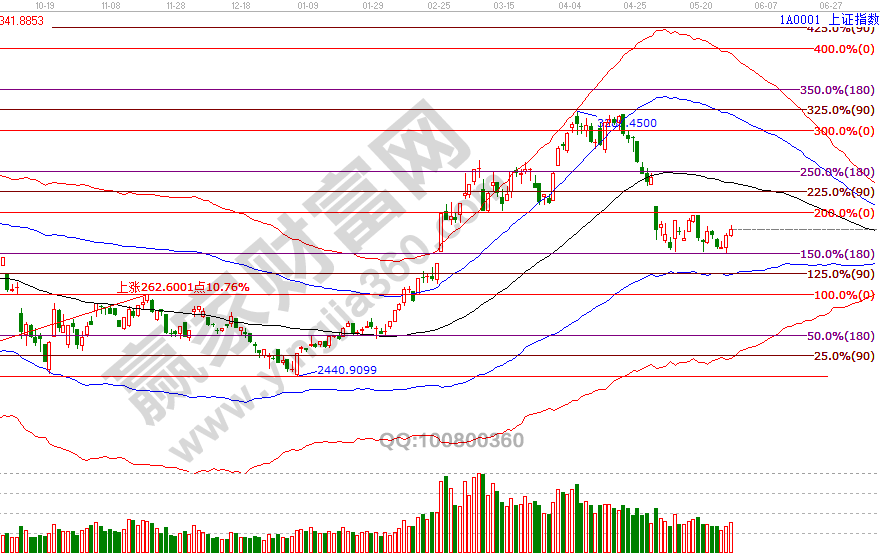 5月指數(shù)三次下探一直強(qiáng)勢的關(guān)鍵位2840點(diǎn),分別是8(9)號、20號及27號,9號及27號下探按工具信號做了明確的參與信號,指數(shù)延續(xù)昨日上攻動作走高,盤中在贏家江恩系統(tǒng)工具VIP學(xué)員群提示,反彈進(jìn)入第一目標(biāo)2928-2960(15分鐘藍(lán)色上軌線)可先獲利了解三分之一籌碼,待量能有效配合突破波段百分比零度位2966后再看高至生命線,29號是5月最后一個(gè)時(shí)間窗口。29號盤中壓力是225度2944點(diǎn)、180度2928點(diǎn),盤中支撐是45度2877、0度2860點(diǎn)。操作策略,指數(shù)擊破黑色生命線進(jìn)入弱勢區(qū)域,整體持倉保持在3-5成。