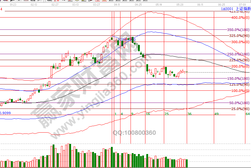 指數(shù)日K線經(jīng)過幾次漲跌剛剛將短周期極反通道生命線多周期修復(fù),周五收盤又被打破,這是一種不好的信號,表明經(jīng)過幾度博弈后市場延續(xù)反彈的信號不堅定,關(guān)注周末外部因素,單從技術(shù)角度解析,以收盤數(shù)據(jù)看有再度回探江恩箱、波段百分比延伸線1倍循環(huán)180度2834的需求,這將是第四次回探,29號減倉的籌碼下周關(guān)注此位置支撐有效性。6月時間窗口分別是4(5)號、13號、25號,3號盤中壓力是2894、2911點,盤中支撐2850、2834點。操作策略,指數(shù)擊破黑色生命線進入弱勢區(qū)域,整體持倉保持在3-4成,做到進可攻退可守。