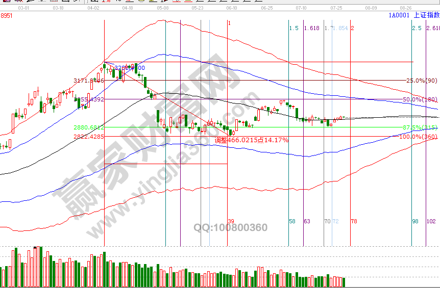 A股三大股指全部在極反通道日線生命線上安全區域運行,深指走勢強于滬指,結合多周期關系,維持24號結論市場延續震蕩反彈觀點,深指反彈參考位是日線藍色上軌線9600附近(7月2號前高附近),滬指反彈參考位是60分鐘藍色上軌線3000附近,時間方面,通過黃金時間周期線測算,8月1號為日線時間窗口,未來幾天有持倉者需關注盤面動作,進入時間窗口后關注指數價格與極反通道關系做近一步決策。7月30號盤中壓力是270度2961點、315度2978點,盤中支撐是180度2928點、135度2911點,日線時間窗口8月1號。操作策略,指數極反通道生命線震蕩,投資者保持3成。