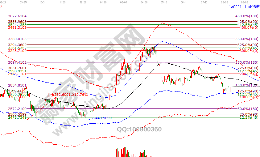 16號時間窗口指數反抽關鍵線得而復失,而先行指數上證50是收在關鍵線上,市場下個時間周期如何運行,關注好周末消息對下周開盤影響。滬指如能收復60分鐘生命線則確立6號2733反攻延續(xù),空間指向60分鐘藍色上軌線和日線黑色生命線【贏家江恩系統學員通過工具查看點位】,反之,圍繞日線藍色下軌線上下震蕩繼續(xù)構造平臺。做出預判是為了更好的應對市場變化,提前制定計劃并按規(guī)則跟隨市場做應對,對于方向的選擇,上指50參考意義更強些。8月19號盤中壓力是315度2844點、0度2860點,盤中支撐是225度2815點、180度2800點,下個日線時間窗口是26號(24號周末)。操作策略,指數生命線下弱勢區(qū)運行,激進者3成倉交易,穩(wěn)健者空倉休息。