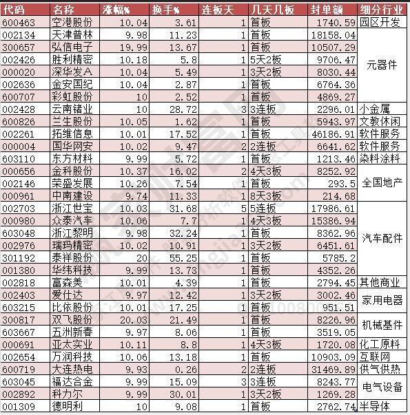三、今日除新股一字板部分漲停(除ST)
