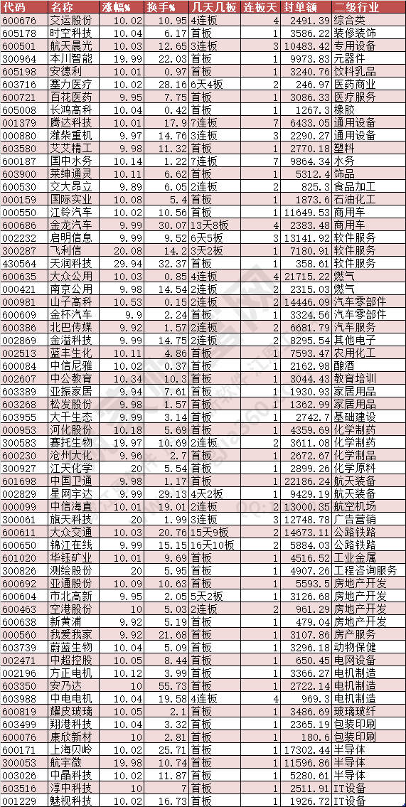 三、今日除新股一字板部分漲停(除ST)