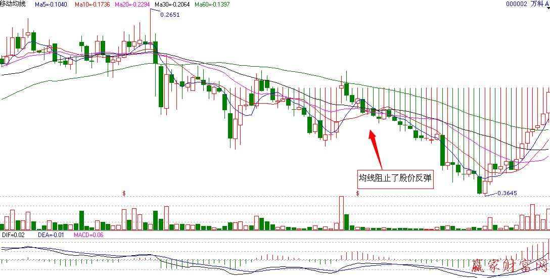 股市中分析的工具多種多樣,掌握其中任何一種都輕而易舉地獲利,相信在對股票基礎知識的學習中,大家都已經了解到均線的作用之大。那么今天就為大家介紹均線的其中一種賣出信號——股價反彈受阻于移動平均線。
