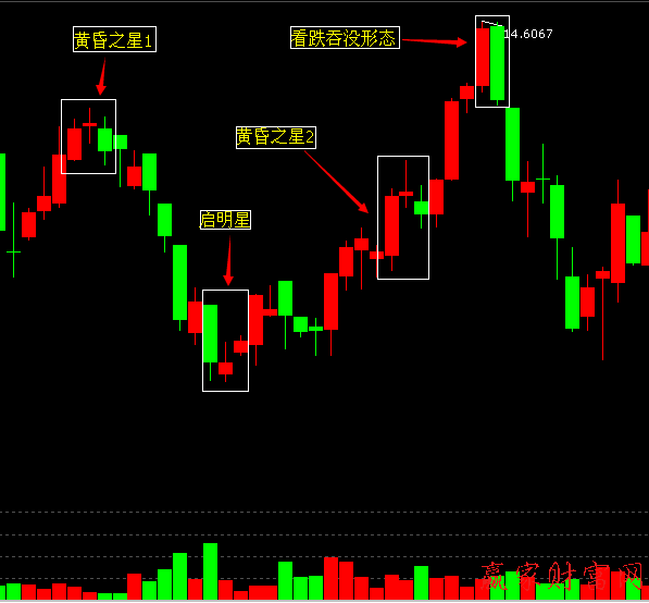 股價在頂部與底部形成的星型狀態,一般都是比較可靠的反轉形態,在高位放量的十字星是黃昏之星,提示你應該賣出了;而在低位放量的十字星是希望之星,提示投資者應該及時買進;