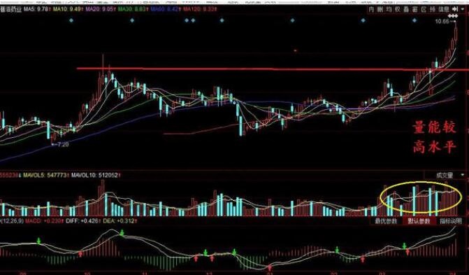 以漲停為前導,股票價格在長陽實體上方作橫向整理,在回靠十日均線的時候稍作停留之后以陰線下穿,五日均線十日均線死叉,20日均線30日均線趕上,企穩(wěn)就會以陽線形式向上大漲,量度漲幅超過10%。最好的買入時機是五日均量線和40日均量線粘合的時候。