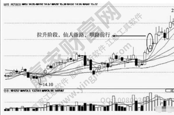 2.依托線上崛起當仙人指路k線格局出現時,股價必須在5日、10日、20日拉升,這是長期安排格局,代表上升趨勢,莊家使用k線洗盤。