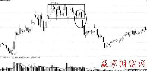 突破性缺口分為向上突破性缺口(圖1)和向下突破性缺口(圖2)。突破性缺口常出現在整理形態瀕臨結束時,由于技術面或基本面的優勢,在多空拉鋸中做出跳空上漲或跳空下跌而脫離盤整的情形,比如投資者常見的跌破支撐,突破阻力。突破性缺口的出現,往往意味著方向的選擇已定,向下突破性缺口意味著行情向下發展,向上突破性缺口意味著行情將進入一片新天地。