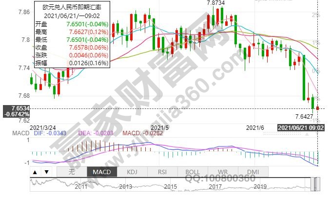 100歐元=765.27人民幣元